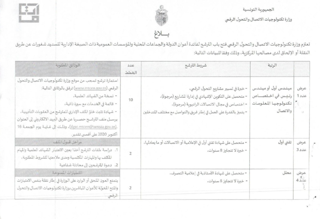 وزارة تكنولوجيات الإتصال والتحول الرقمي / تفتح باب الترشح