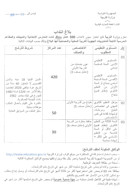 تعتزم وزارة التربية فتح عدد من المناظرات الخارجية مشفوعة بإختبارات وذلك لانتداب 500 عون متعاقد،