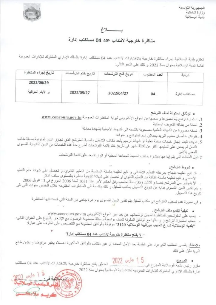 Accueil|concours tunisie 2022|مناظرة إنتداب أعوان إداريين بالوظيفة العمومية (بكالوريا منهاة) concours tunisie 2022 مناظرة إنتداب أعوان إداريين بالوظيفة العمومية (بكالوريا منهاة) 15 avril 2022 10 407 Moins d’une minute Tagsباك مستوى باكالوريا مناظرات 2021 مستوى باكالوريا مناظرة إنتداب أعوان إداريين بالوظيفة العمومية (بكالوريا منهاة) 15 avril 2022 10 407 Moins d’une minute Facebook X Linkedin Tumblr Pinterest Reddit VKontakte Partager par email Imprimer