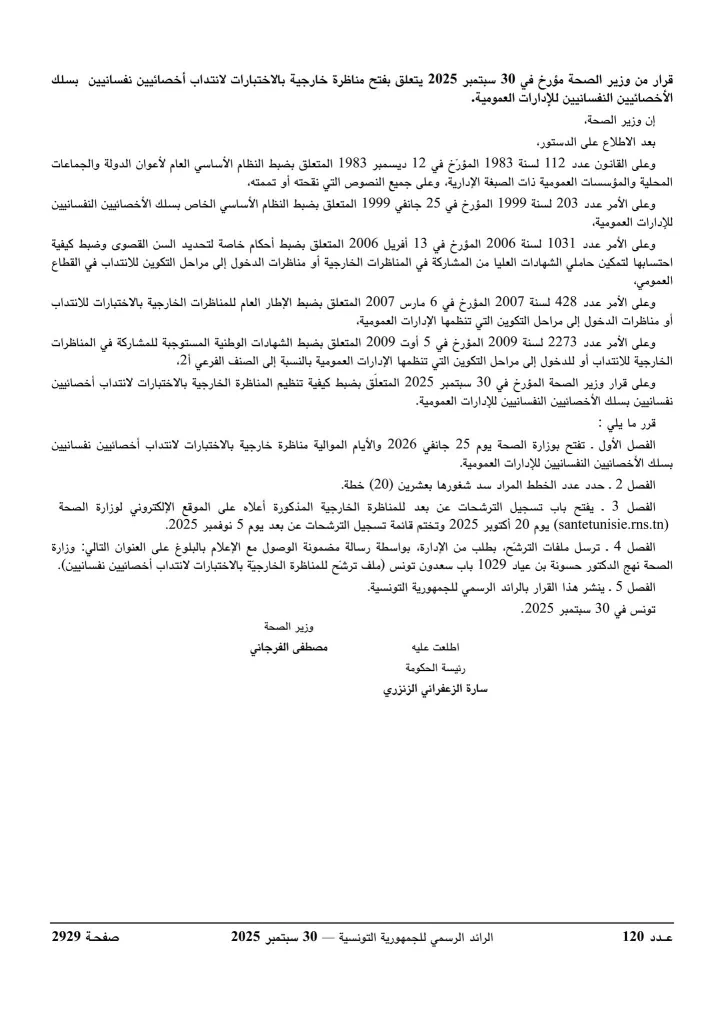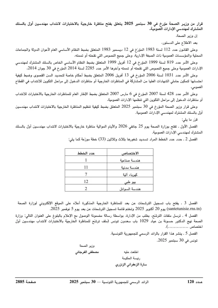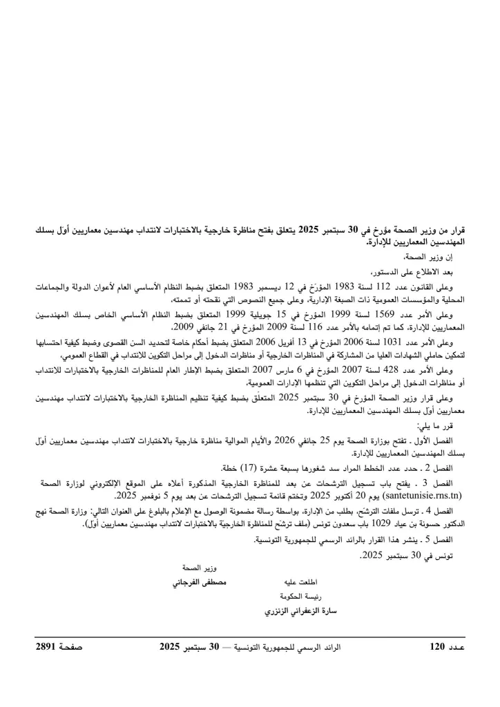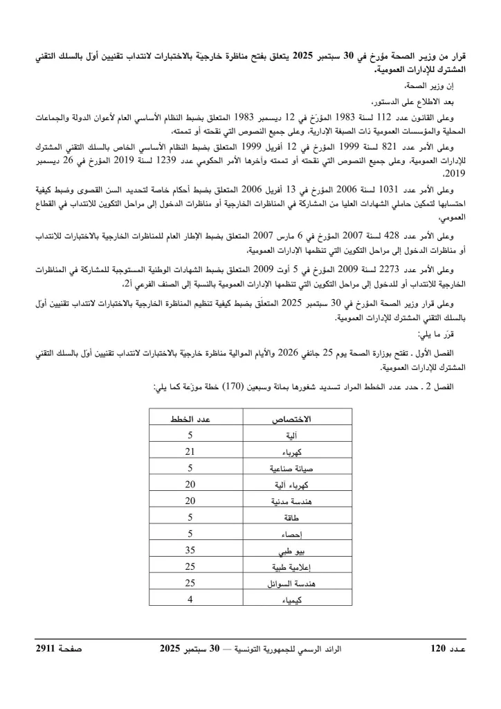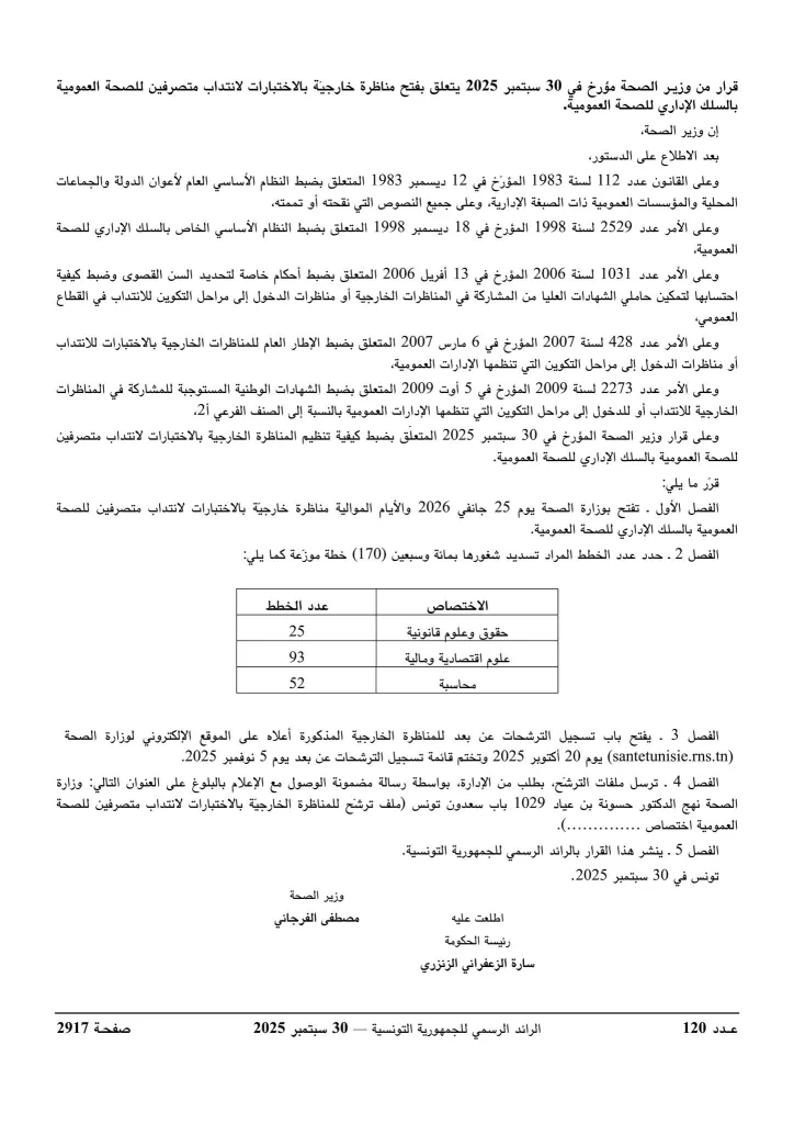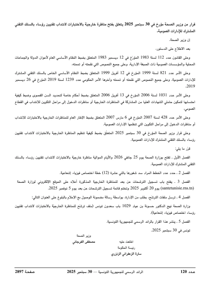 وزارة الصحة تفتح مناظرات لإنتداب 612 خطة في عديد الإختصاصات : آخر أجل 05 نوفمبر 2025