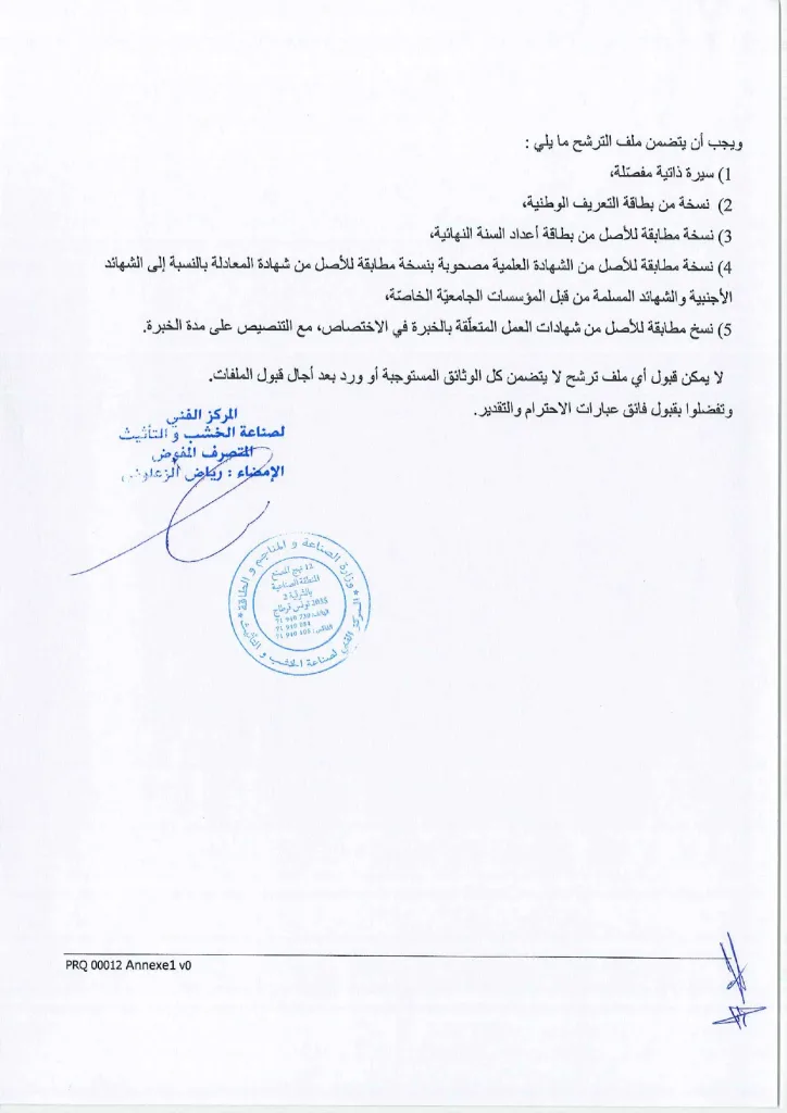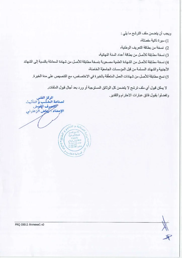 مناظرة المركز الفني لصناعة الخشب والتأثيث للإنتداب : آخر أجل 31 أكتوبر 2025