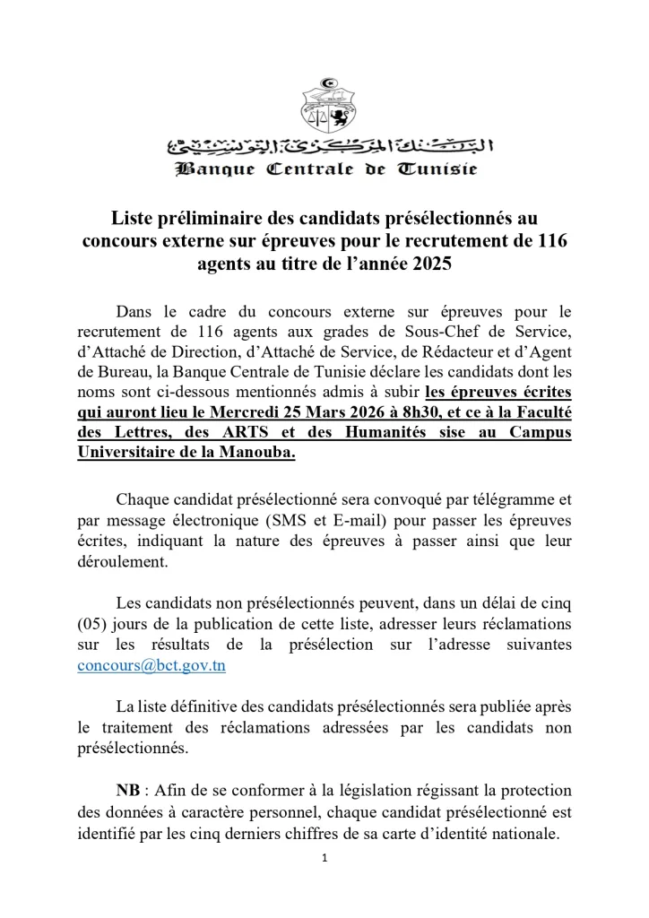 Accueil|concours bct 2026|بلاغ خاص بمناظرة البنك المركزي التونسي – Concours BCT concours bct 2026 بلاغ خاص بمناظرة البنك المركزي التونسي – Concours BCT 28 février 2026 349 Moins d’une minute Concours BCT البنك المركزي التونسي بلاغ Tagsbct concours concours concours bct 2026 28 février 2026 349 Moins d’une minute Facebook X Linkedin Tumblr Pinterest Reddit VKontakte Partager par email Imprimer