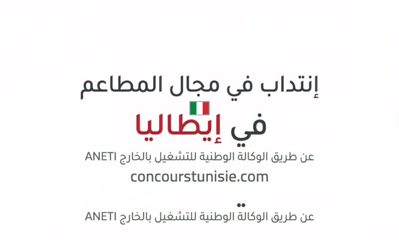 إنتداب في مجال المطاعم في إيطاليا 🇮🇹 عن طريق الوكالة الوطنية للتشغيل بالخارج ANETI